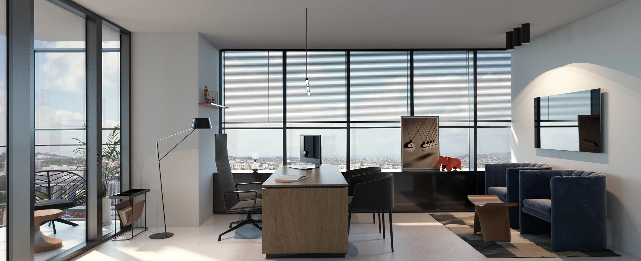The tree main design characteristics that any law firm office should inspire are transparency, professionalism and balance. Using a minimalist and purely functional design language, the office is strictly composed of elements you would interact with, leaving purely decor accents to the side. The overall space comes to life with the help of black glass, light and dark cream fabrics and a series of subtle led light fixtures that carry both the clients and staff around the space.